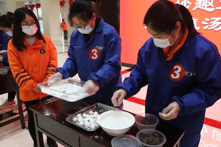 猜完燈謎后,公司為給職工們準(zhǔn)備了寓意“團(tuán)團(tuán)圓圓”的湯圓,大家圍坐在一起,敞開心扉暢聊。