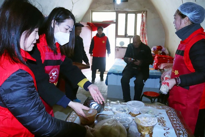 對于行動不便的老人,志愿者們上門服務,為他們送去熱氣騰騰的愛心午餐。