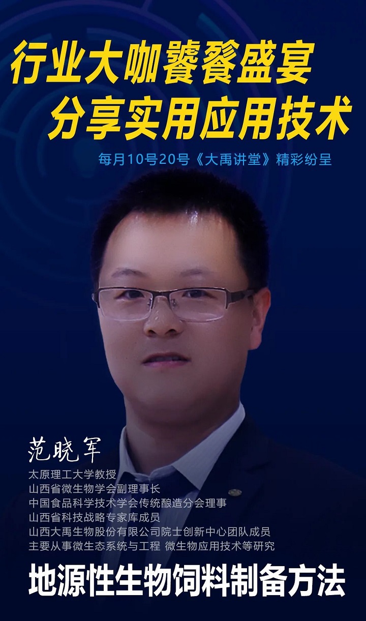 《大禹講堂》是大禹生物技術(shù)團(tuán)隊內(nèi)部技術(shù)培訓(xùn)、交流平臺,每月的10日、20日進(jìn)行兩期。本期范曉軍老師從以下四個方面講解了地源性生物飼料制備方法: